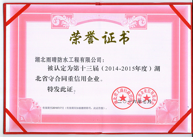 -湖北省建筑防水行業(yè)“十強企業(yè)”