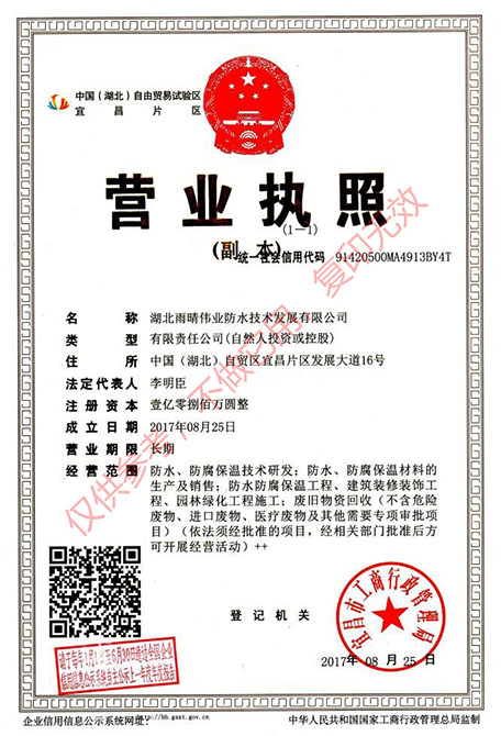 雨晴偉業(yè)在集團公司“致力卓越、見證未來”的強勢理念下,立志做到“雨晴偉業(yè),晴朗世界”;立志研發(fā)“別無我有,別有我優(yōu)”的優(yōu)質差異化產品;立志成為高品質防水系統(tǒng)引領者,為人類解除滲漏之苦,呵護人類安居生活!