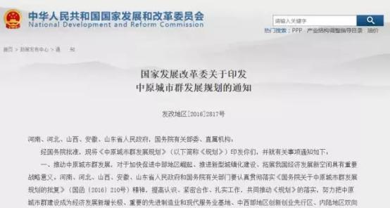 2017年1月5日,國(guó)家發(fā)改委印發(fā)通知,明確了中原城市群發(fā)展規(guī)劃的重大工程項(xiàng)目。項(xiàng)目以“鐵公基”為主,在未來(lái)5年內(nèi)逐漸開(kāi)工。隨著這些基建工程的鋪開(kāi),沿線城市群的城區(qū)改造、商品房建設(shè)工程,自然是水漲船高的。